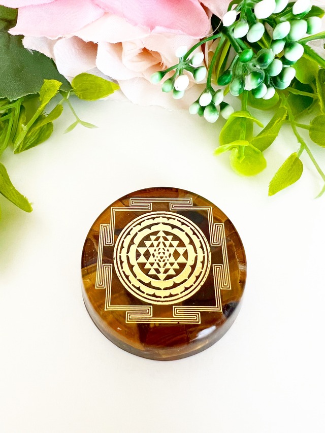 【商品詳細】 ・タイガーアイさざれ石 ・レジン液 ・シュリヤントラ サイズ:表面…約4.5cm、裏面…約4.9cm、高さ…1.3cm ※「天然石のミニ御守り」と表示しているものは「オルゴナイト」ではございません。 高さの関係もあり、こちらの型はオルゴナイトには出来ませんので、名前の通り「天然石の御守り」になります。 予めご了承下さい。 【タイガーアイのヒーリング効果】 ・仕事運、金運を高める ・願望達成をサポート ・成功をもたらす ・広い視野と洞察力を高める ・独立して新しいことを始める人を守護する ・自信と実行力を高める ・物事の本質を見抜く ・インスピレーションを高める ・クリエイティブな仕事の方に ・人のエネルギーに左右されない ・苛立ち、恐怖心を除く ・災厄を退ける ・邪悪なエネルギーを跳ね返すパワー 【タイガーアイ】 金運や仕事運を高め、願望の達成をサポートしてくれる石として高い人気を誇るタイガーアイ。 光の反射によって縞模様が虎の眼のように見えることか ら、古くより虎の眼のごとく『すべてを見通す眼』と考えられてきました。 その『眼』のパワーは洞察力を高め、物事の本質を見抜き、災厄を退け、成功をもた らすといわれています。 目先の損得にとらわれず自分にとって本当に必要なものを見抜き最良の判断へと導いてくれるでしょう。 また決断力と行動力を高める石ともいわれ、独立して新しい事業を始めようとする人や新しいことにチャレンジしようとする人をそっと後押ししてくれる 石です。 自信を持って前に進めない人や、クヨクヨ考えがちな人が身につけることによって、失敗することに対する恐怖心やトラウマなどの気持ちをやわらげて くれるでしょう。 いつまでも夢みがちでなかなか実行に移せない人には、その目標を見失うことなく簡単にあきらめない強い意思を養い、進むべき道を照らし続けてくれま す。 また、インスピレーションを高めてくれるためアイディアを必要とする企画系の仕事や、クリエイティブな仕事をしている人にもお勧めの石だといえるで しょう。 タイガーアイは、古くから邪悪な力(悪意や呪い)に対する有効なお守りとしても利用されてきました。 邪悪なエネルギーを跳ね返すパワーがありますの で、人間関係のトラブルで悩んでいる方におすすめです。 そのため信頼できる多くの人脈を培い、それが相乗効果ともなり仕事運アップにもつながるでしょう。 【シュリヤントラ】 ・繁栄 ・豊かさ ・あらゆる幸運を引き寄せる ・内なる調和を維持する ・邪気除け ・事故防止 【配送方法について】 定形外郵便を選択された場合は、保証はございませんのでご了承下さい。