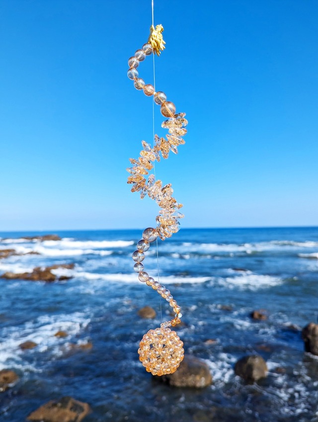 ※本作品は、12月26日(金)20:00より販売開始予定です。 ・本作品は、12月26日・己巳(つちのとみ)の日に合わせて販売を開始します。 己巳の日は、豊かさや循環、現実世界における流れを整える力が強まる日といわれています。 巳は、蛇から龍へとつながる象徴であり、 「巡らせる」「脱皮する」「次の段階へ進む」エネルギーを持つ存在。 そして「己」は、大地・土台・現実を表し、目に見えない流れを、地上の世界へとつなぐ力を持ちます。 フラーレンが宇宙の光を循環させ、金龍がその光を地上へと導く。 その構造を持つ本作品にとって、己巳の日は、自然な流れの中で選ばれたタイミングでした。 必要な方に、必要な循環が届きますように。 ・本作品は、素材の希少性や制作時間だけでなく、フラーレンと金龍の循環構造を成立させるための設計・配置・バランスを含めて制作しています。 価格には、素材や制作時間だけでなく、フラーレンと金龍の循環構造を成立させるための設計・配置・バランス、そして長期的に空間と在り方に作用する構造そのものの価値を反映しています。 【商品詳細】 ・神聖幾何学フラーレン (シャンパンオーラクォーツ6mm × 90粒使用) ・シャンパンオーラクォーツ(各サイズ) ・スワロフスキービーズ ・サンキャッチャークリスタル(オクタゴン) ・龍の顔パーツ ※本作品は、素材の組み合わせ・配置・循環構造を重視して制作した エネルギー構造体です。 【作品について】 フラーレンは、グレートセントラルサンのエネルギーがトーラス状に常に出入りしながら循環する構造を持つ、神聖幾何学です。 本作品では、そのフラーレンを、シャンパンオーラクォーツ(ゴールデンオーラ)で制作し、金龍サンキャッチャーの中に組み込んでいます。 フラーレンは、それ自体が宇宙の光を循環させ、空間に巡らせる構造を持っています。 その循環する光の流れを、金龍が地上や現実の世界へと意識的に導き、空間・人・環境へと、より広く巡らせていきます。 この役割分担とバランスを重視して制作しています。 【Golden Axis(ゴールデン・アクシス)について】 “Golden Axis(ゴールデン・アクシス)”とは、宇宙と地球を繋ぐ黄金の軸を意味します。 天(フラーレン)と地(金龍)を繋ぎ、循環する宇宙の光を地上へと導くことで、 持つ人の内側にある“中心軸(アクシス)”を整え、再生させていきます。 フラーレンが宇宙の光を循環させ、金龍がその光を地上へと導く。 この役割分担によって生まれる安定した循環は、空間だけでなく、人の在り方や現実の流れにも穏やかに作用します。 このフラーレンは、「何かを起こすため」ではなく、空間や人の状態が自然に整っていくための循環を支える役割として組み込んでいます。 【オーラクォーツ(シャンパンオーラ/ゴールデンオーラ)について】 オーラクォーツは、水晶に金属を蒸着させることで生まれるクリスタルです。 水晶本来の純粋な性質に、金属のエネルギーが重なり合い、エネルギーの循環性と安定性が高められています。 シャンパンオーラクォーツ(ゴールデンオーラ)は、特に以下のような働きを持つといわれています。 ・高次のエネルギーを、現実的で扱いやすい形へと調整する ・思考と感情のバランスを整え、落ち着いた判断力をもたらす ・内側の軸を安定させ、自分の立ち位置を明確にする ・空間全体のエネルギーを穏やかに整え、安心感をもたらす ・豊かさや循環の流れを、自然な形で広げていく 水晶の「増幅・循環」の性質に、 ゴールドの持つ「安定・現実性・豊かさ」のエネルギーが加わることで、 高次と地上をつなぐ役割を担うクリスタルとされています。 本作品では、宇宙の光を循環させるフラーレンの構造と、 シャンパンオーラクォーツの持つ安定した波動を組み合わせることで、 日常の中で無理なく作用するエネルギー循環を目指しています。 【補足:素材の選択について】 本作品では、すべてのパーツを同質に揃えることよりも、エネルギーの流れ・反射・循環のポイントとして適切な性質を持つ素材を選ぶことを優先しています。 龍のしっぽ部分に使用したゴールドビーズは、高い反射性と収束性を持ち、 循環の最終点においてエネルギーを受け止め、場全体へ穏やかに還流させる役割を担っています。 そのため、この部分は他の素材では代替できず、現時点ではこのパーツが最適な選択であると判断しています。 ☆【この作品が向いている方】 ・フラーレンの構造や循環性を理解している、または関心がある方 ・宇宙的なエネルギーと、地上での現実的なバランスの両方を大切にしたい方 ・空間・土地・環境のエネルギーを穏やかに整えたい方 ・一時的な高揚感ではなく、長期的な安定と循環を求める方 ・作品の背景や思想も含めて、大切に迎えてくださる方 ★【この作品が向いていない方】 ・即効性や劇的な変化のみを求める方 ・強い刺激や派手なエネルギーを期待される方 ・価格や見た目の華やかさ