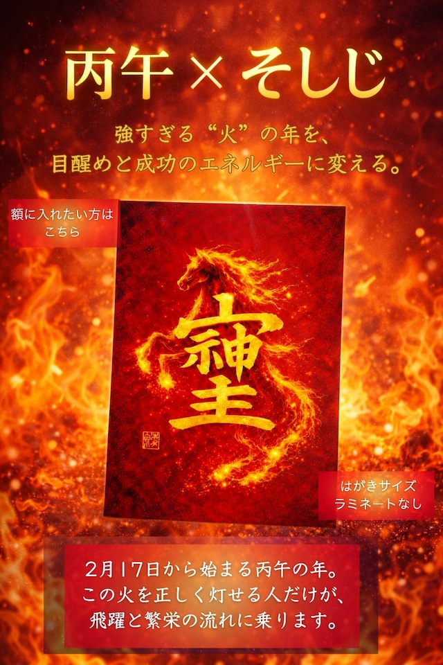 【はがきサイズ(ラミネートなし)】そしじ × 丙午(ひのえうま)護符カード