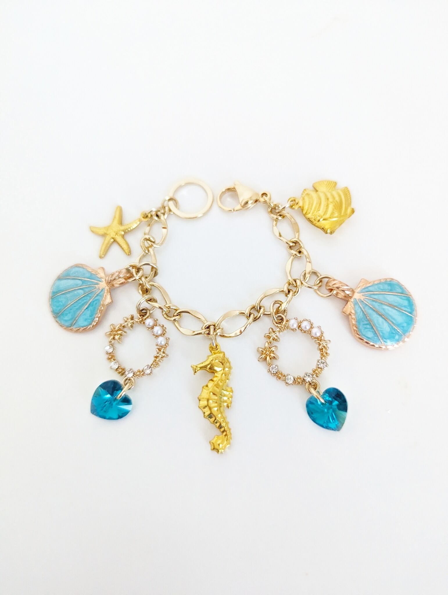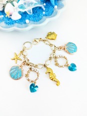 ひとつひとつのチャームがきらめきを放ち、まるで海辺の思い出を閉じ込めたような仕上がりです。