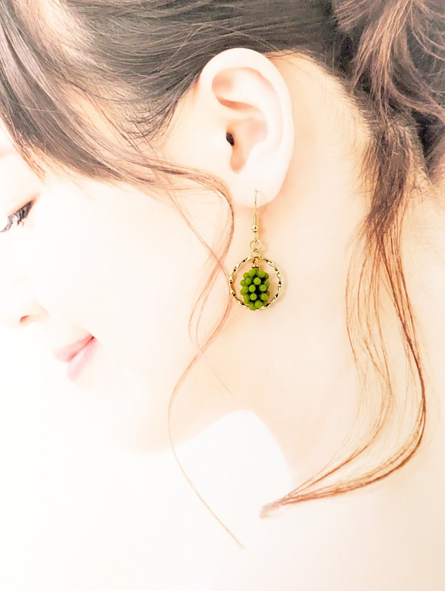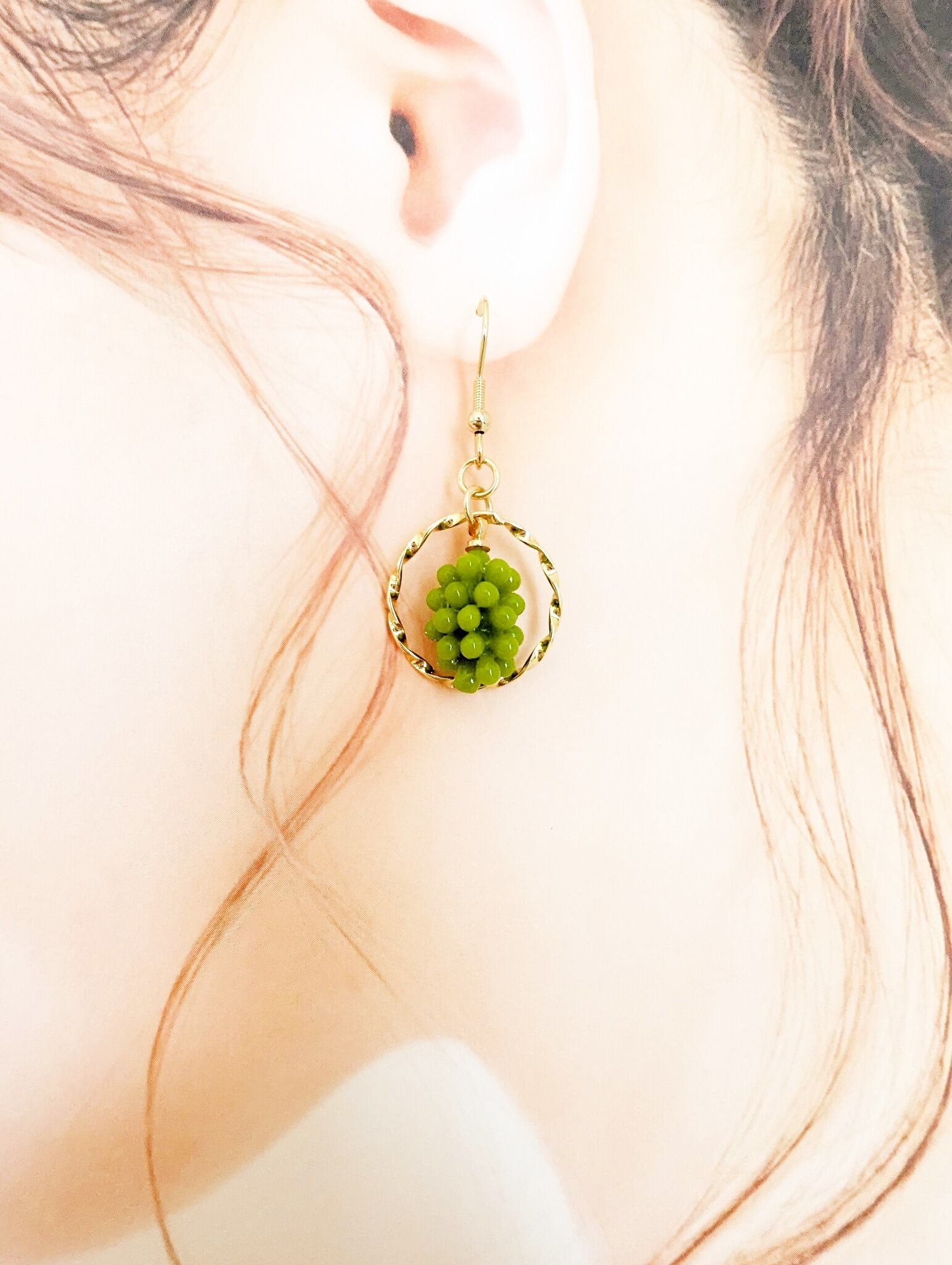 瑞々しいシャインマスカットを思わせる、小さな実が揃った愛らしいピアス。