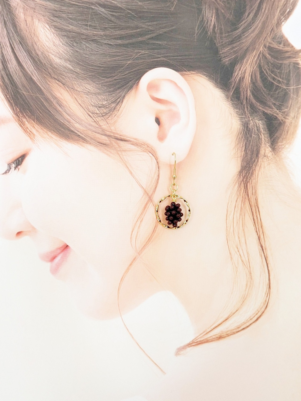ゴールドのフープの中で揺れる小さな果実たちが、まるで瑞々しい葡萄の雫のように、上品な輝きを放ちます。