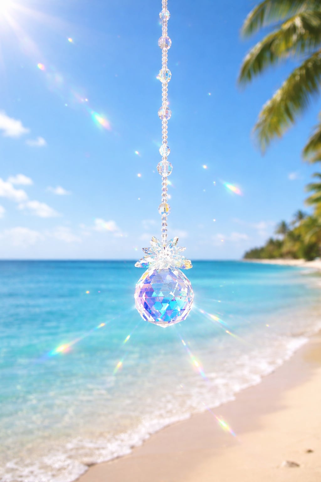 上部から連なるビーズが光を集め、