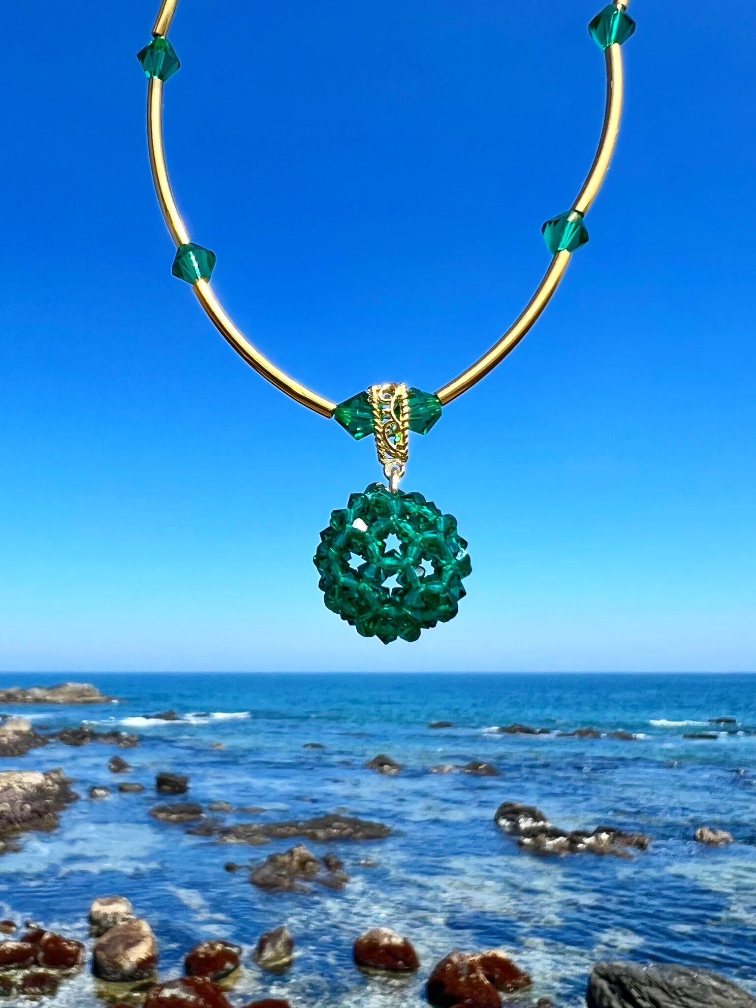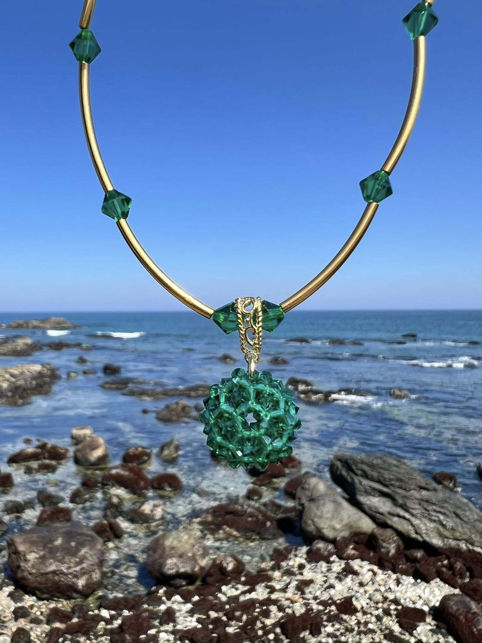 エメラルド・コア― グリーンスワロフスキー バッキーボールネックレス ―