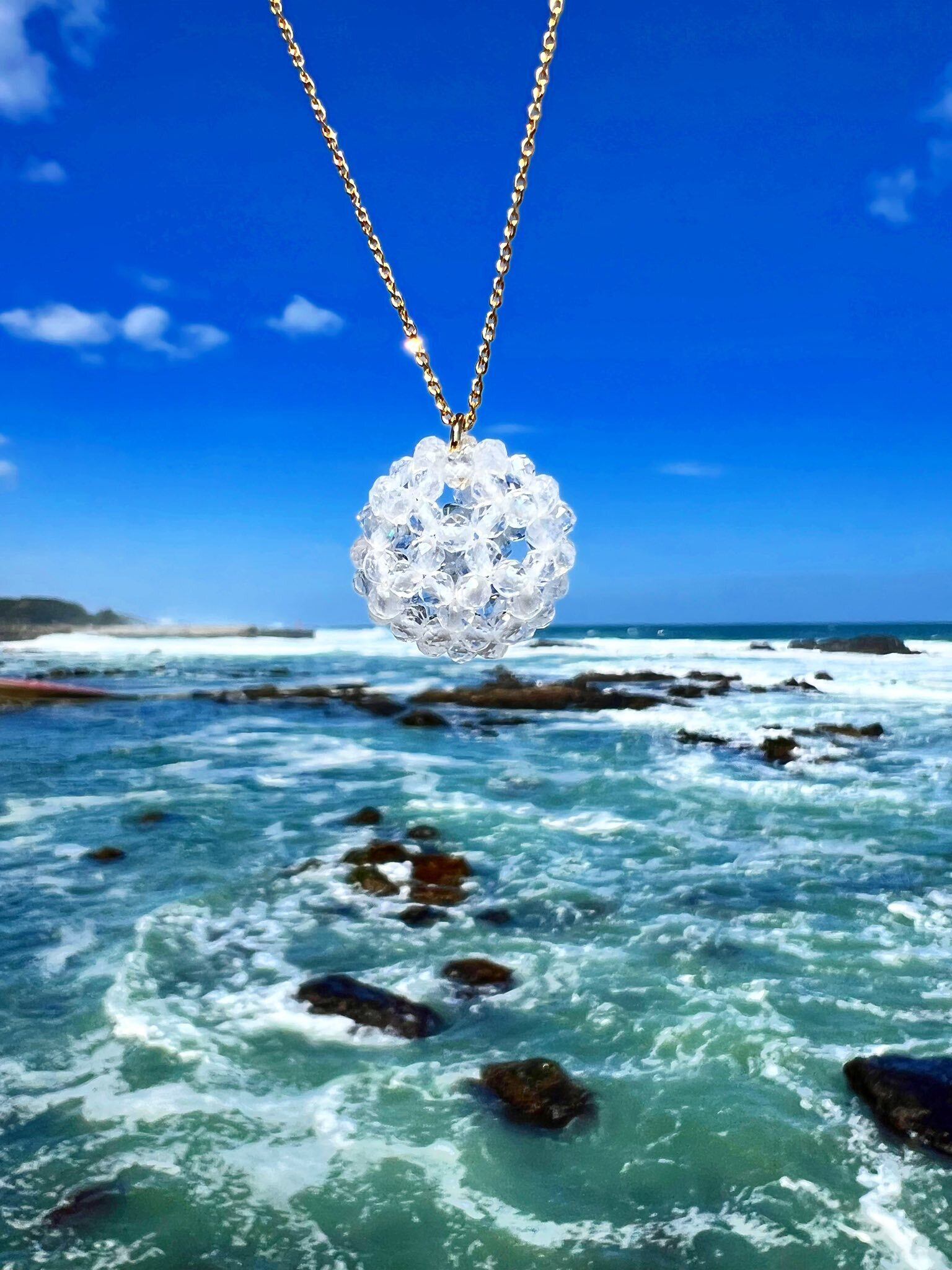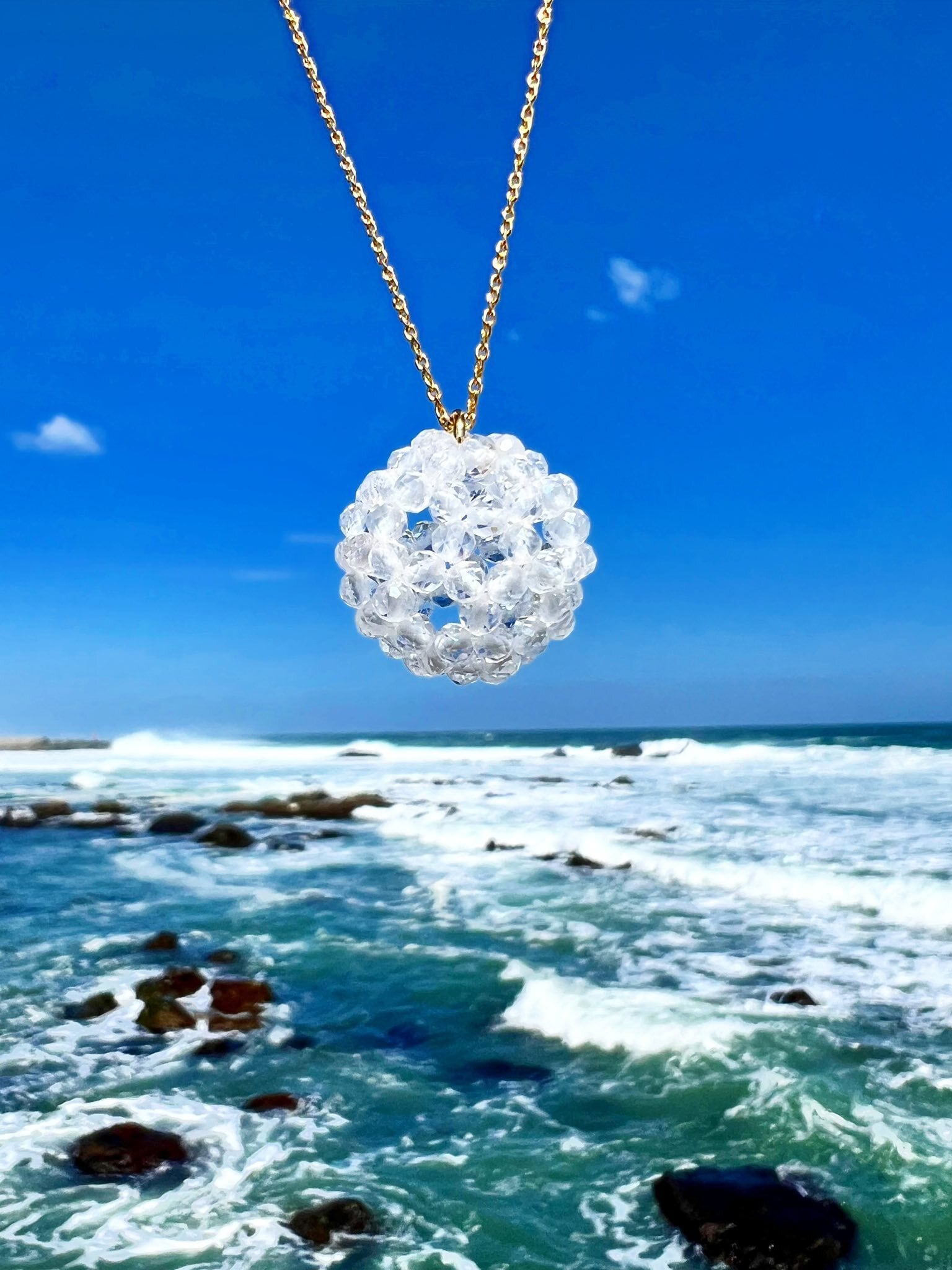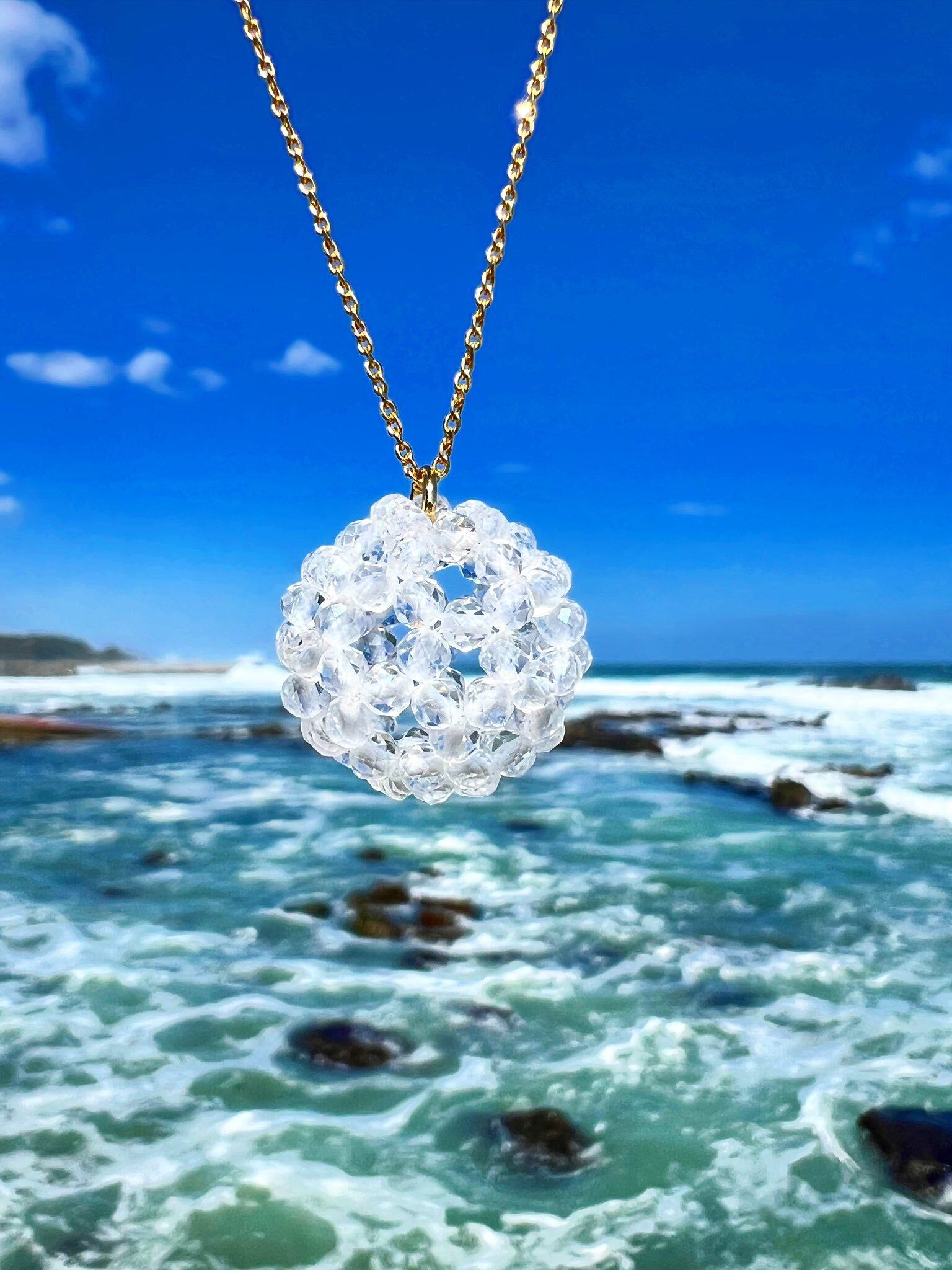 フラーレンをネックレスとして身につけることで、胸元で水晶の透明な輝きを感じながら、日常の中で神聖幾何学の美しい形を楽しむことができます。