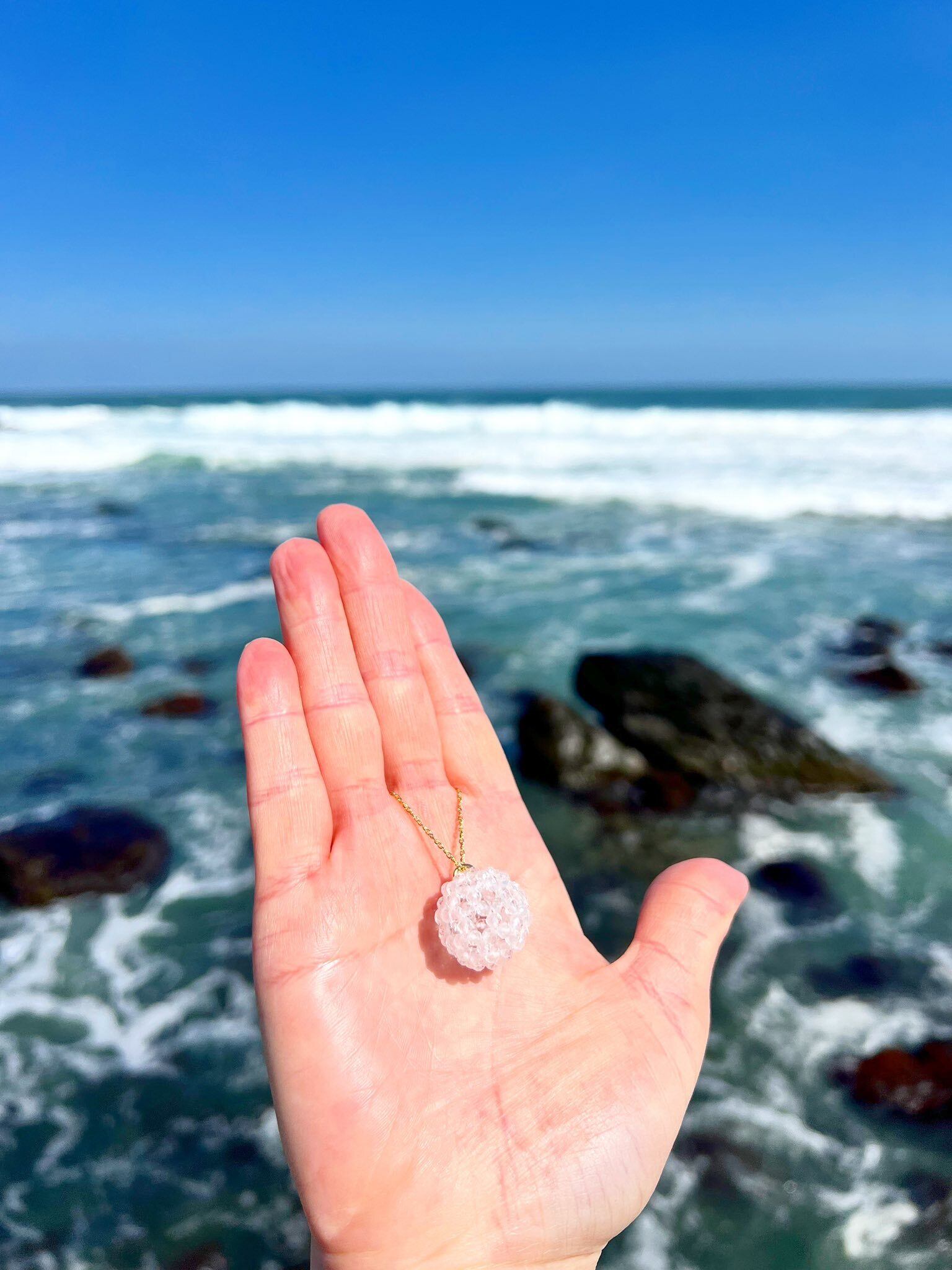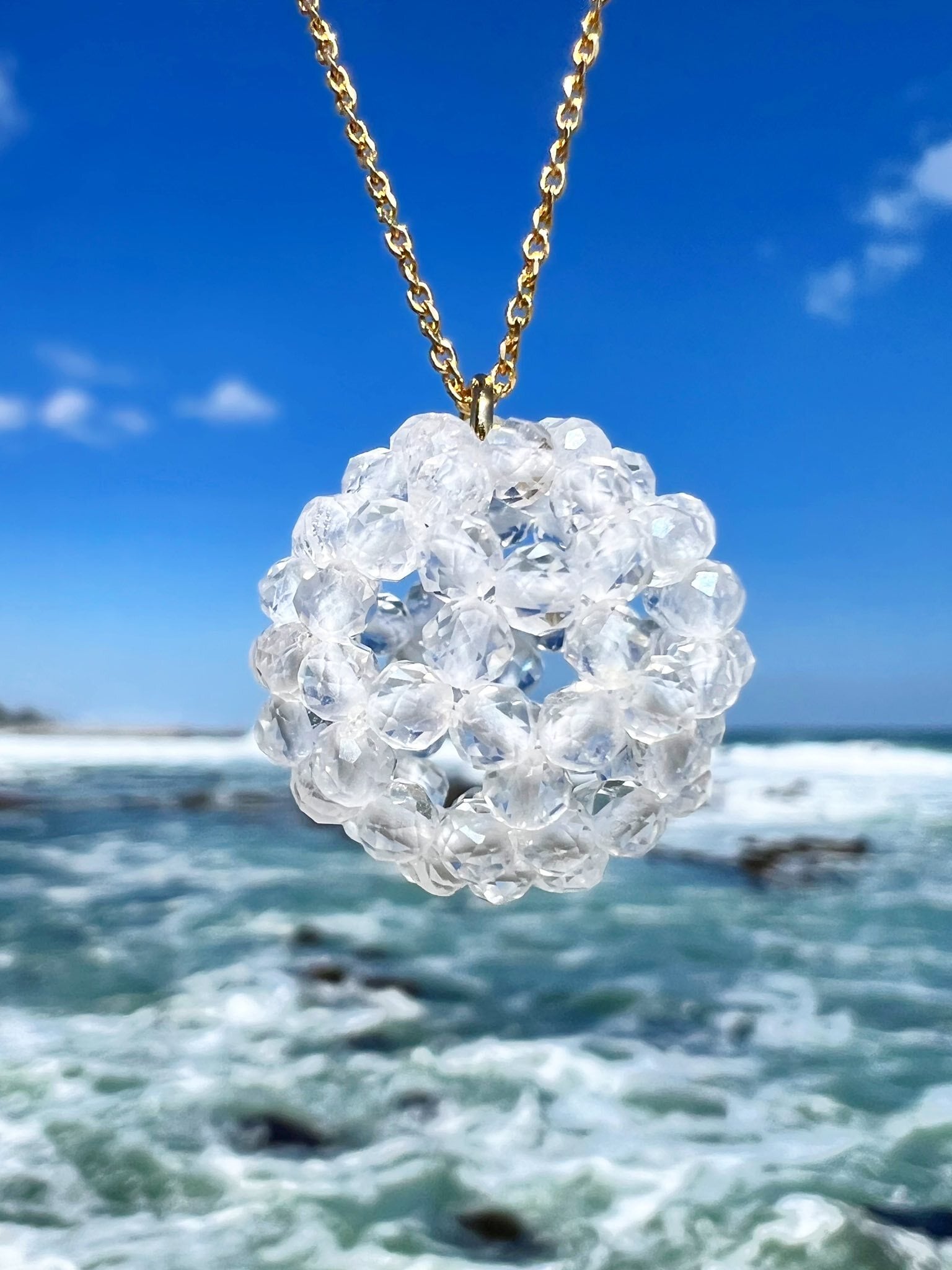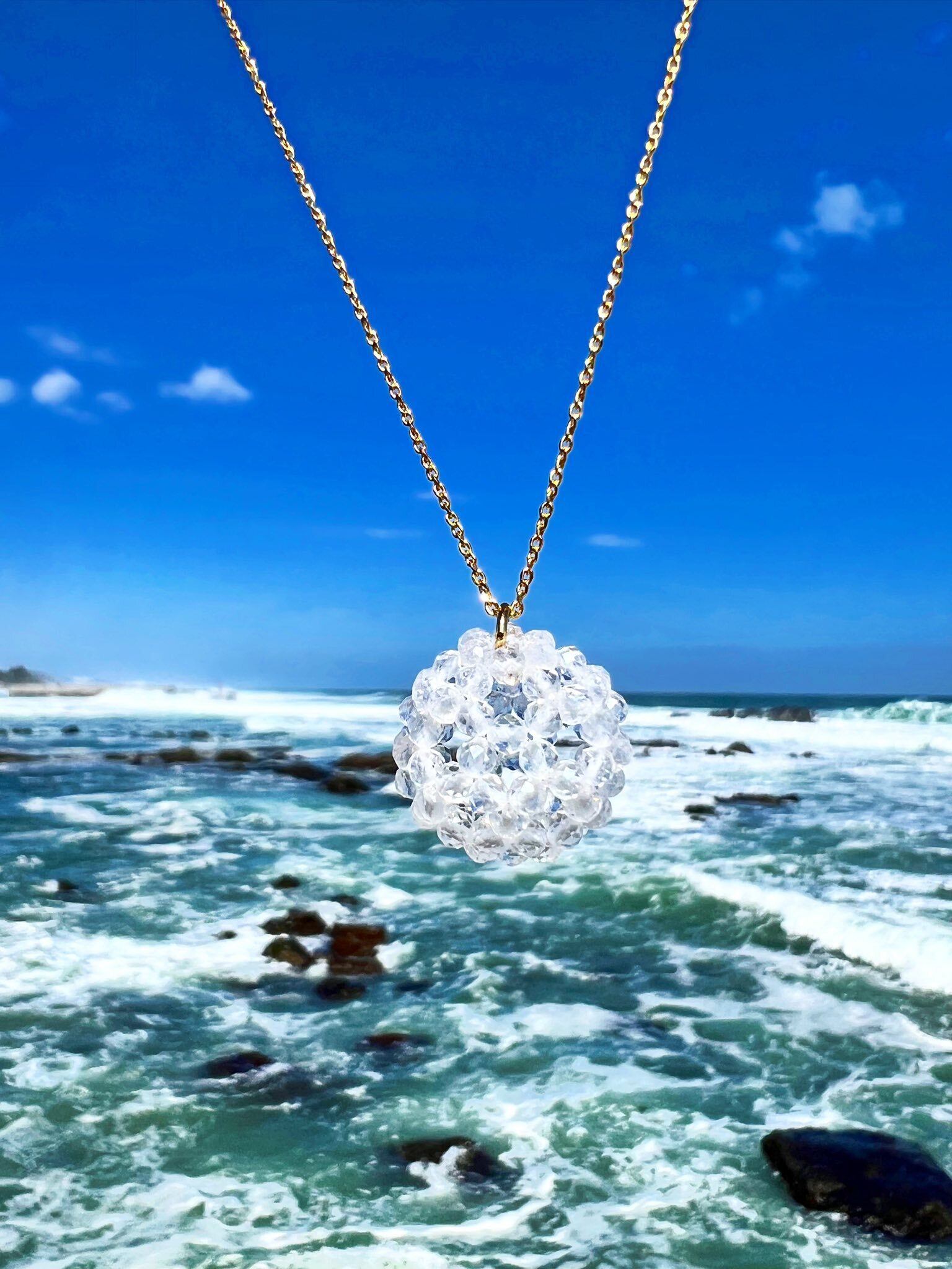 フラーレンをネックレスとして身につけることで、胸元で水晶の透明な輝きを感じながら、日常の中で神聖幾何学の美しい形を楽しむことができます。