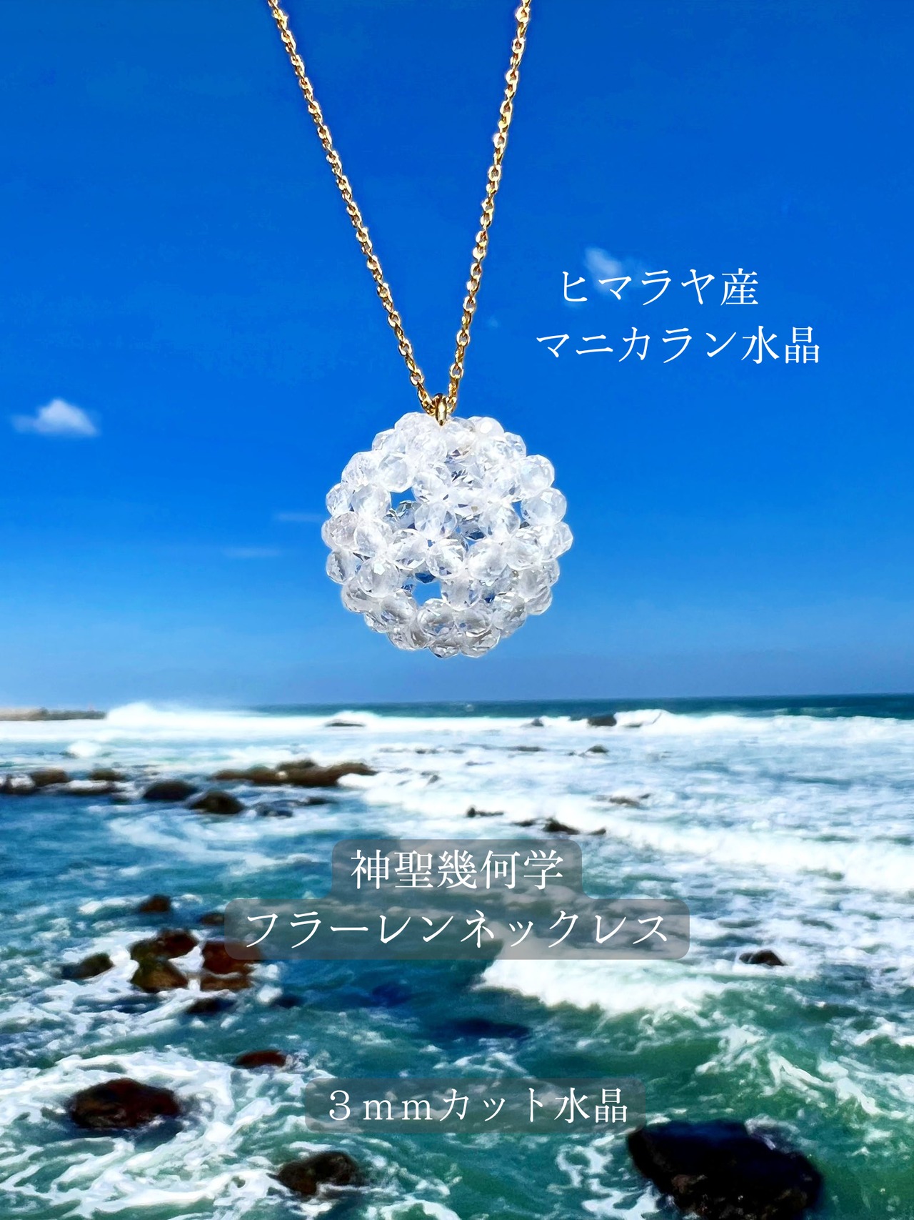 今回、この美しいマニカラン水晶を使用して神聖幾何学フラーレンネックレスを制作しました。