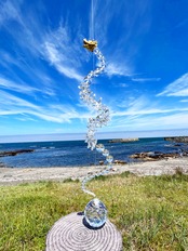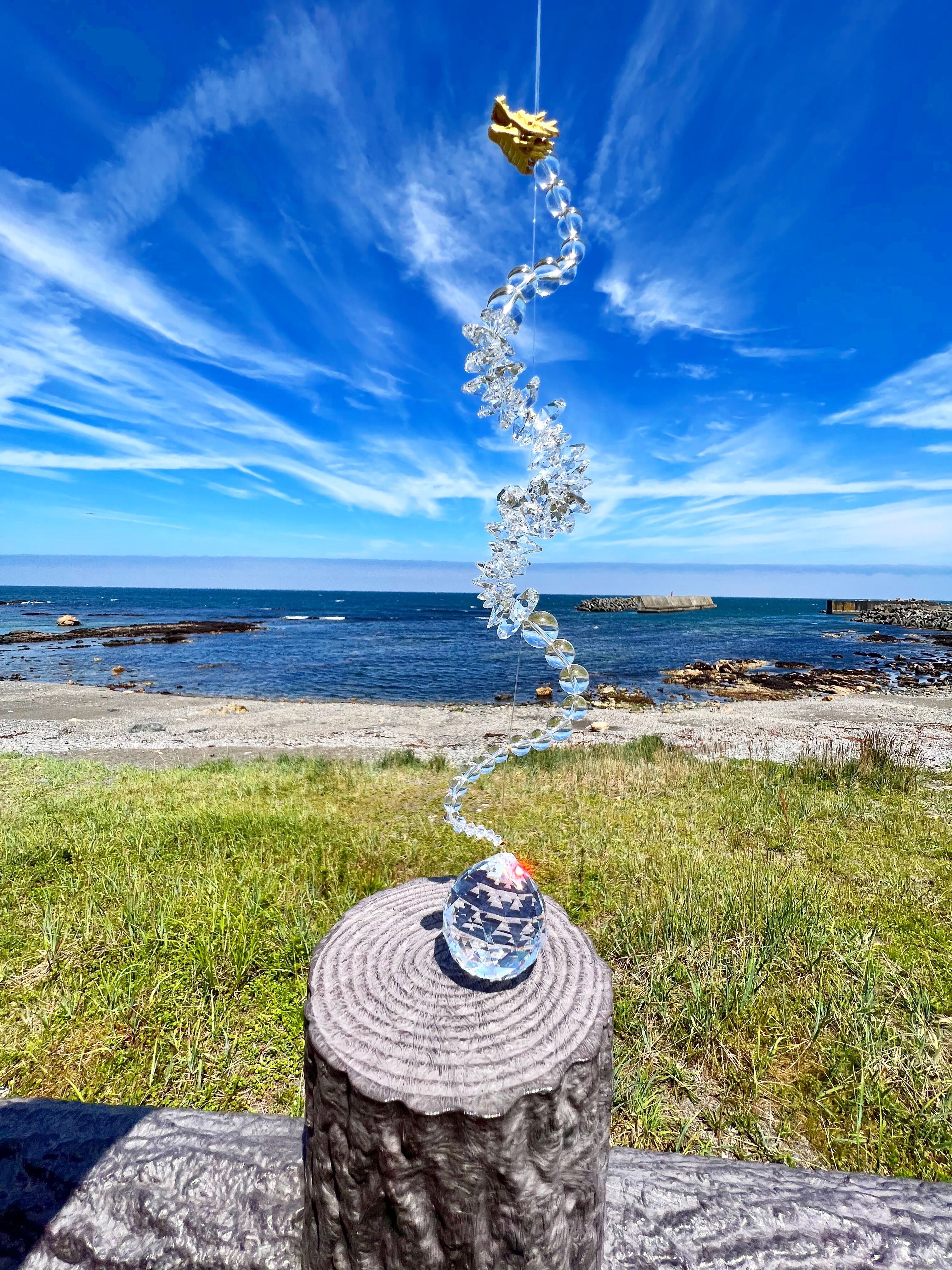 静寂と神聖さに包まれた十和田湖の水のエネルギー、そして十和田神社の澄んだ気の中で、このサンキャッチャーは光と共に深く調和しました。