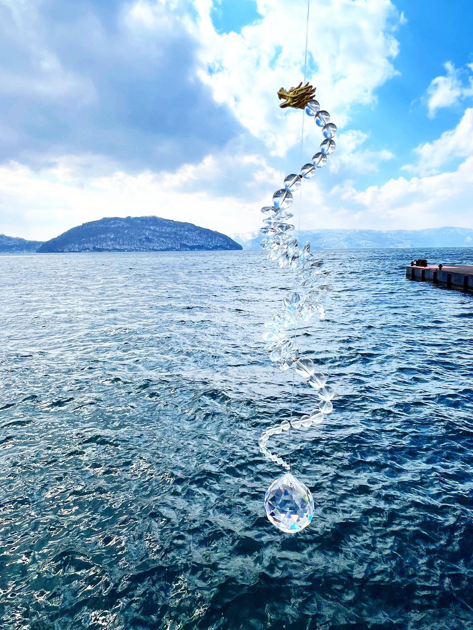 こちらは、2026年3月17日という特別な大開運日(寅の日×大安×一粒万倍日)に、青森県・十和田湖および十和田神社へ実際に連れて行き、現地のエネルギーの中で過ごした龍神サンキャッチャーです。