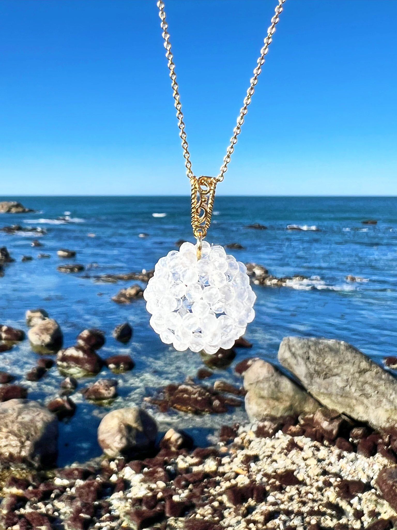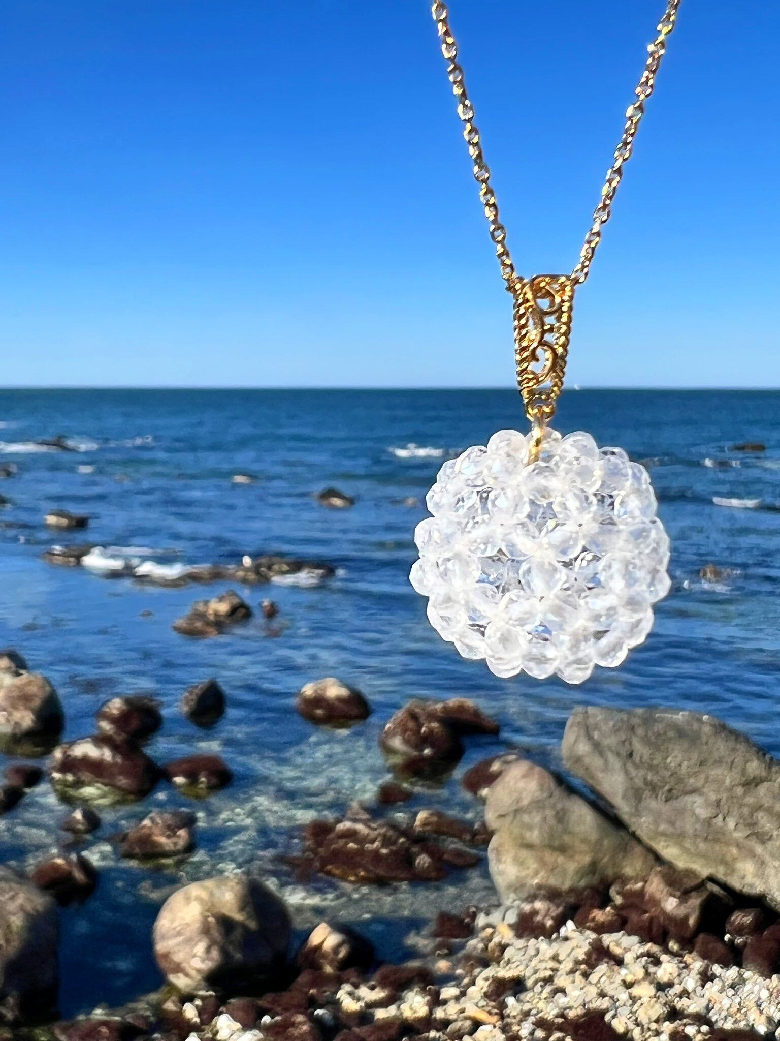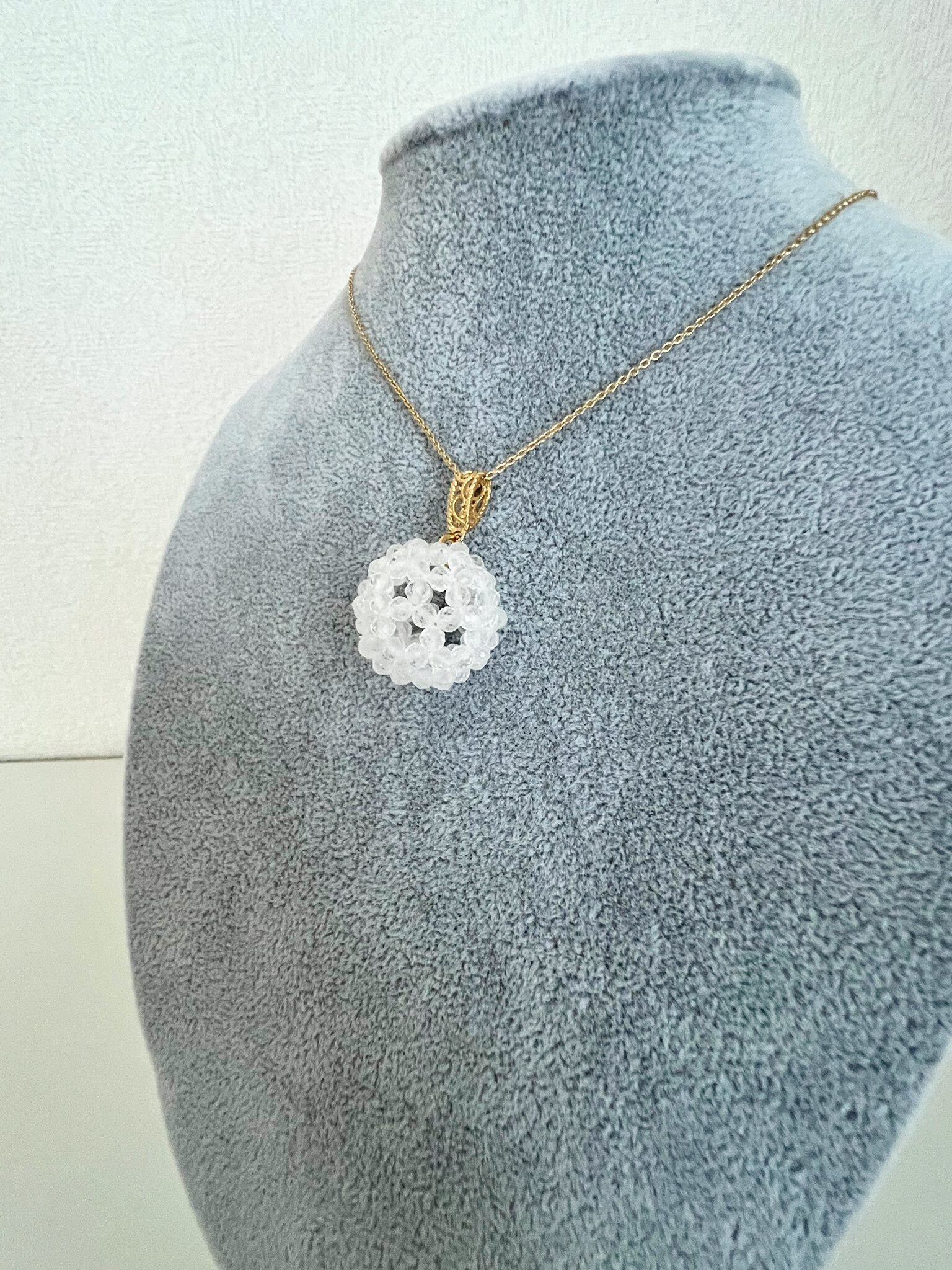 今回のフラーレンネックレスは、マニカラン水晶の中でも、やや白みを帯びた水晶を使用して制作しました。