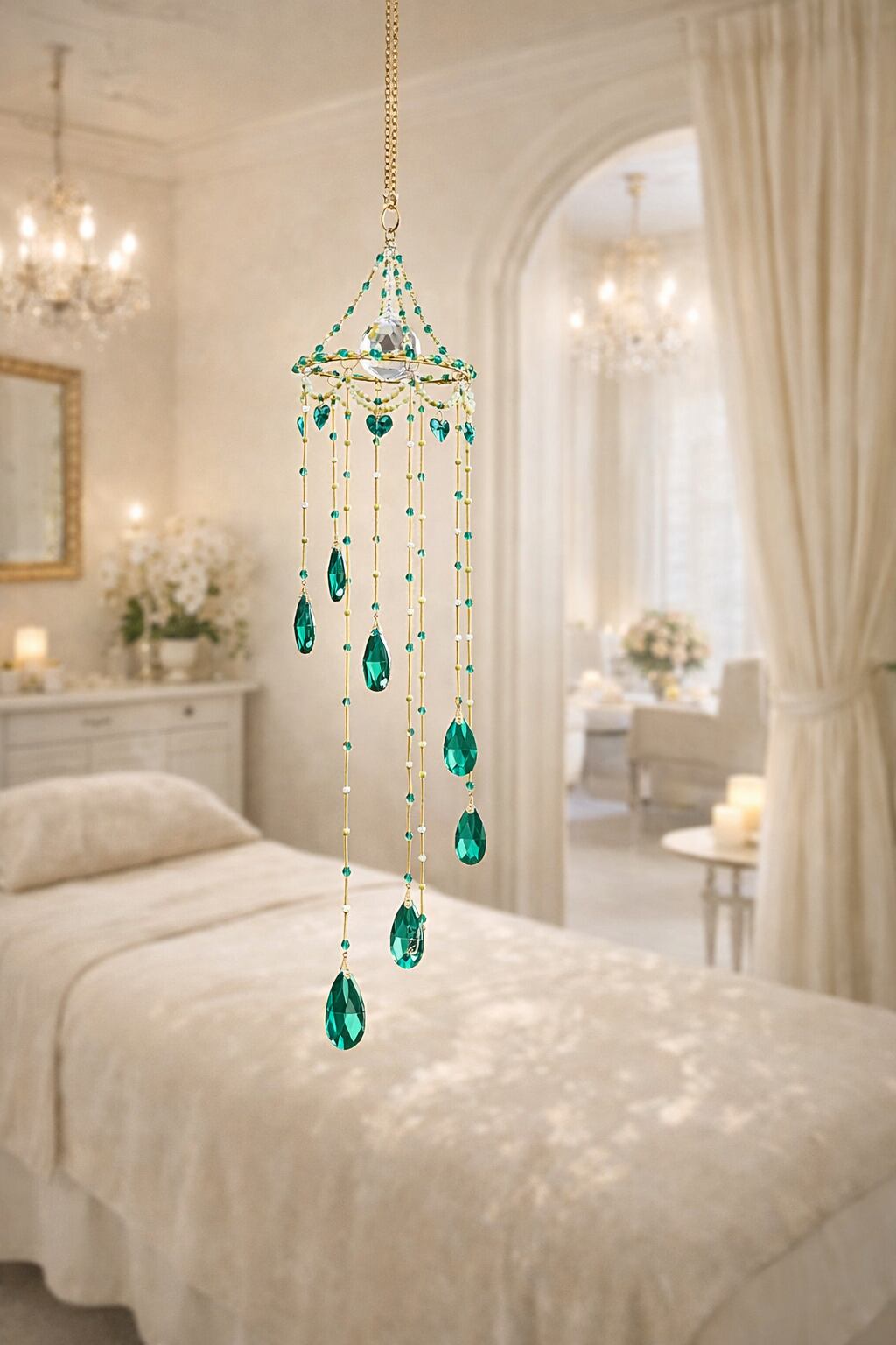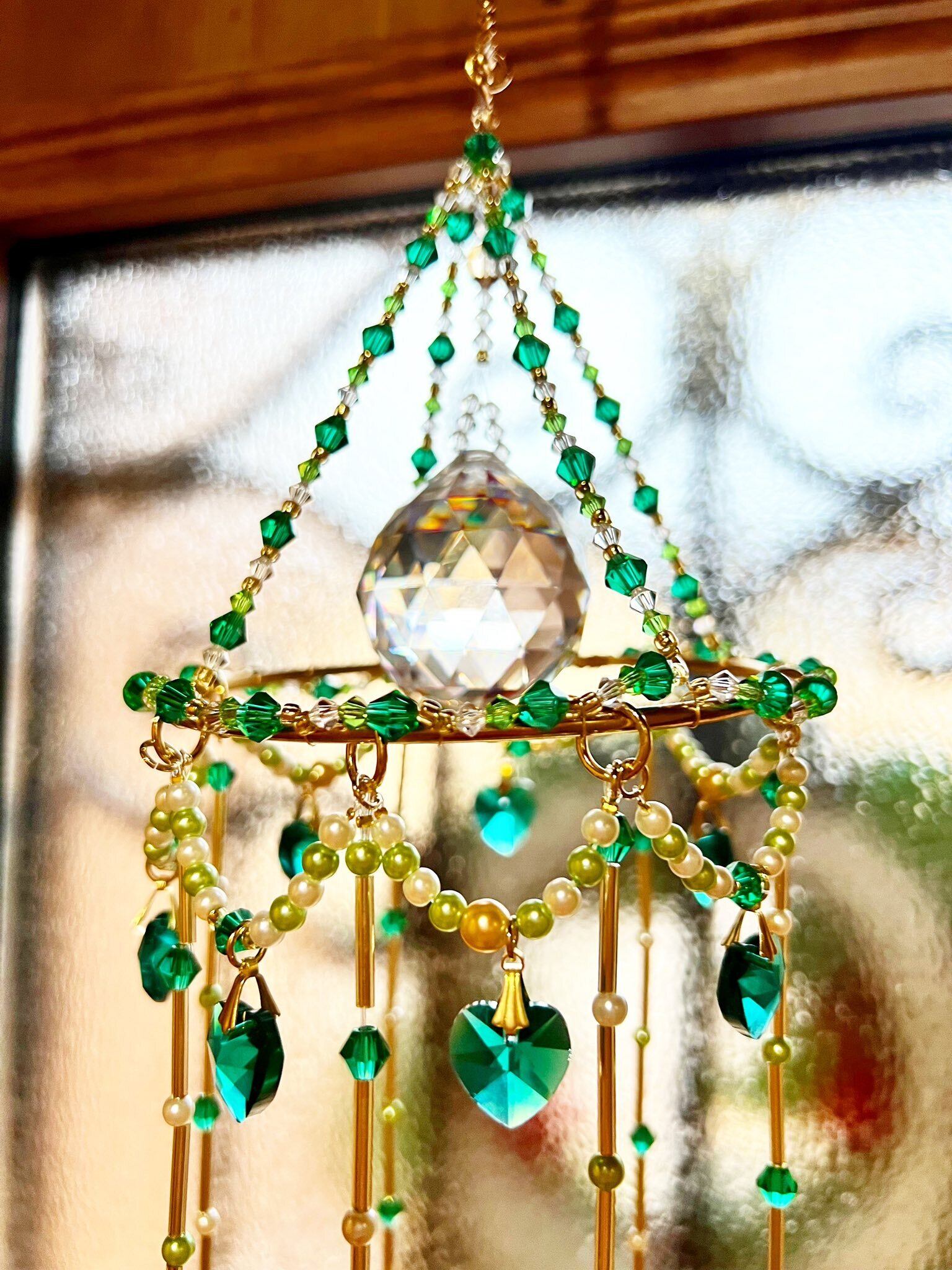 また、サンキャッチャーは光を受けて輝きを広げるアイテムのため、窓辺など自然光が差し込む場所に飾っていただくことで、その美しさをより感じていただけます。