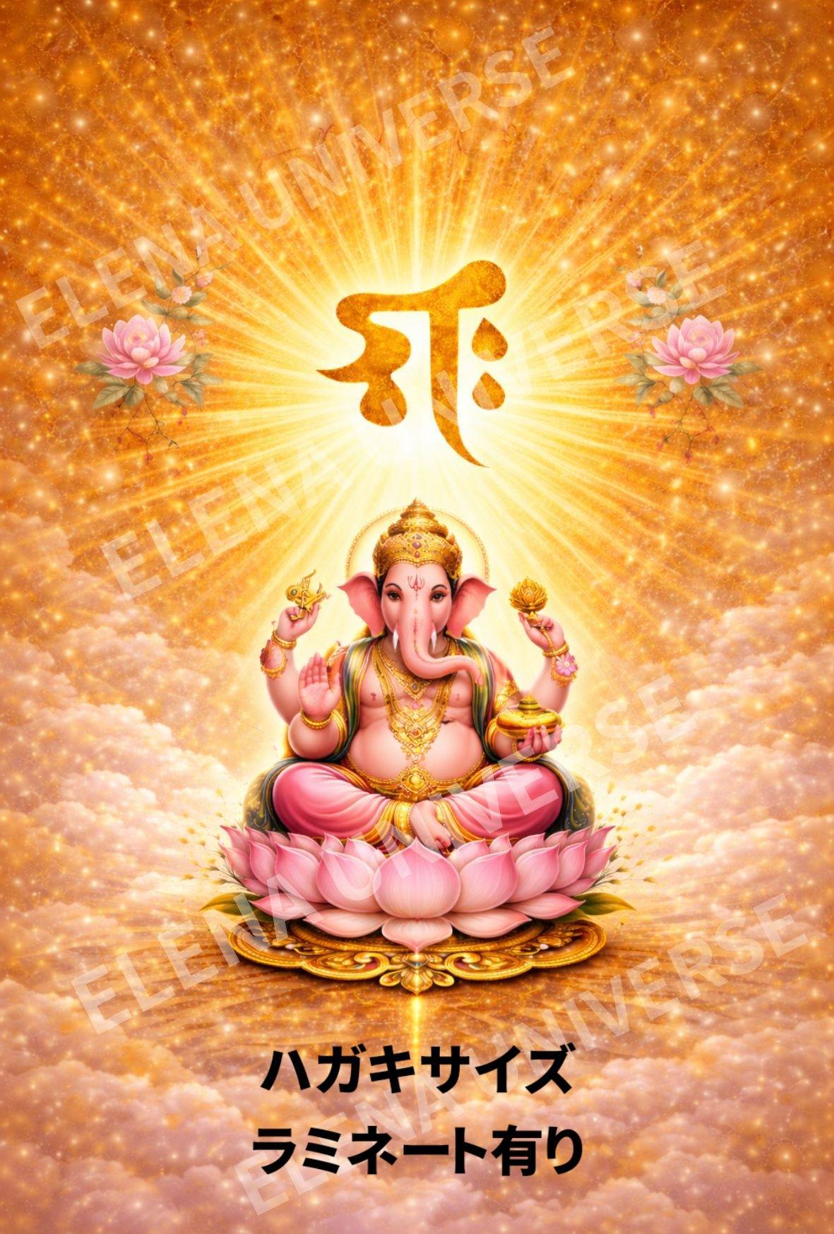【はがきサイズ・ラミネート有り】ガネーシャ招福ゴールドカード