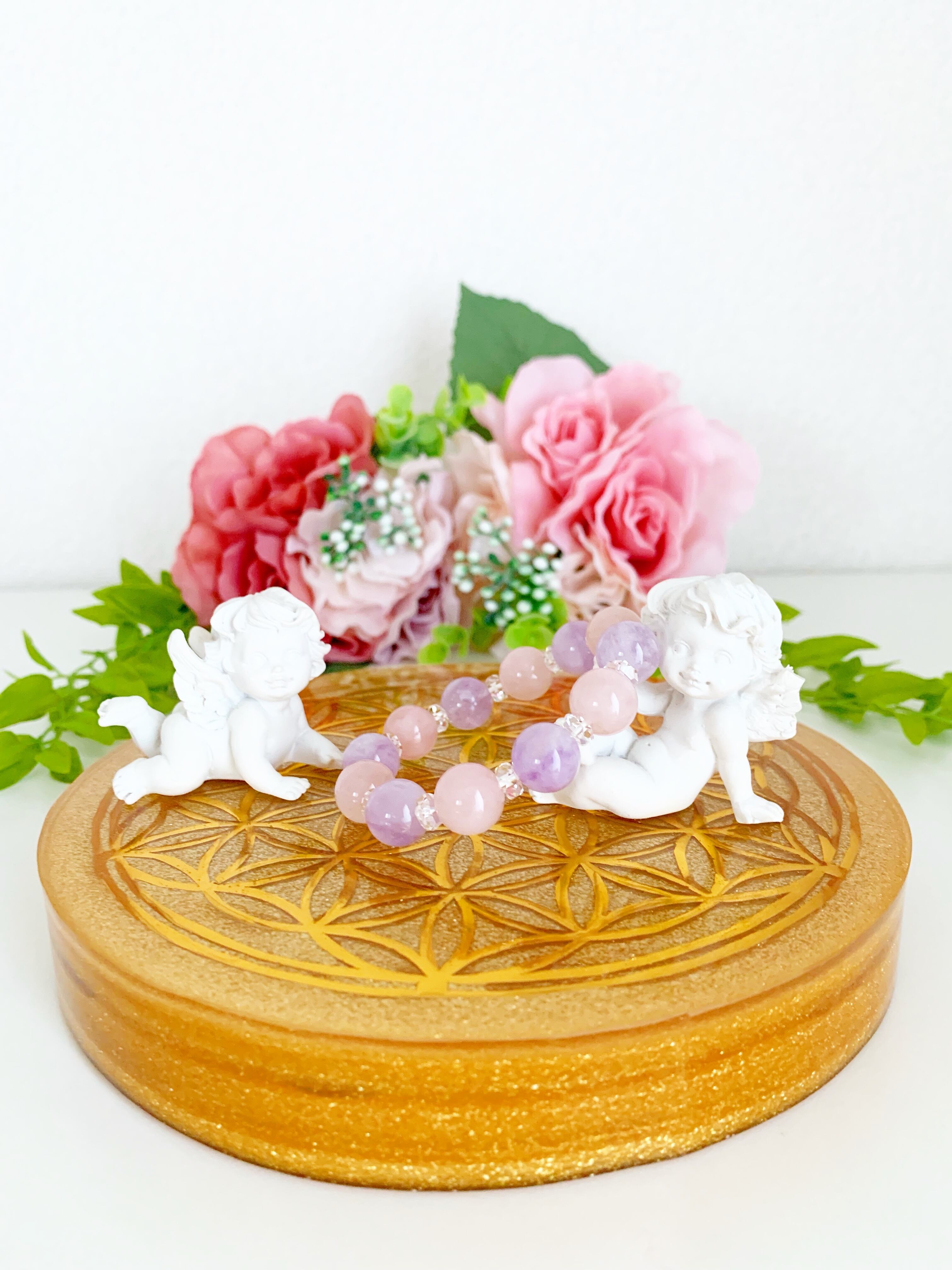 【ブレスレット】(15.5cm)ローズクォーツ&ラベンダーアメジスト♡