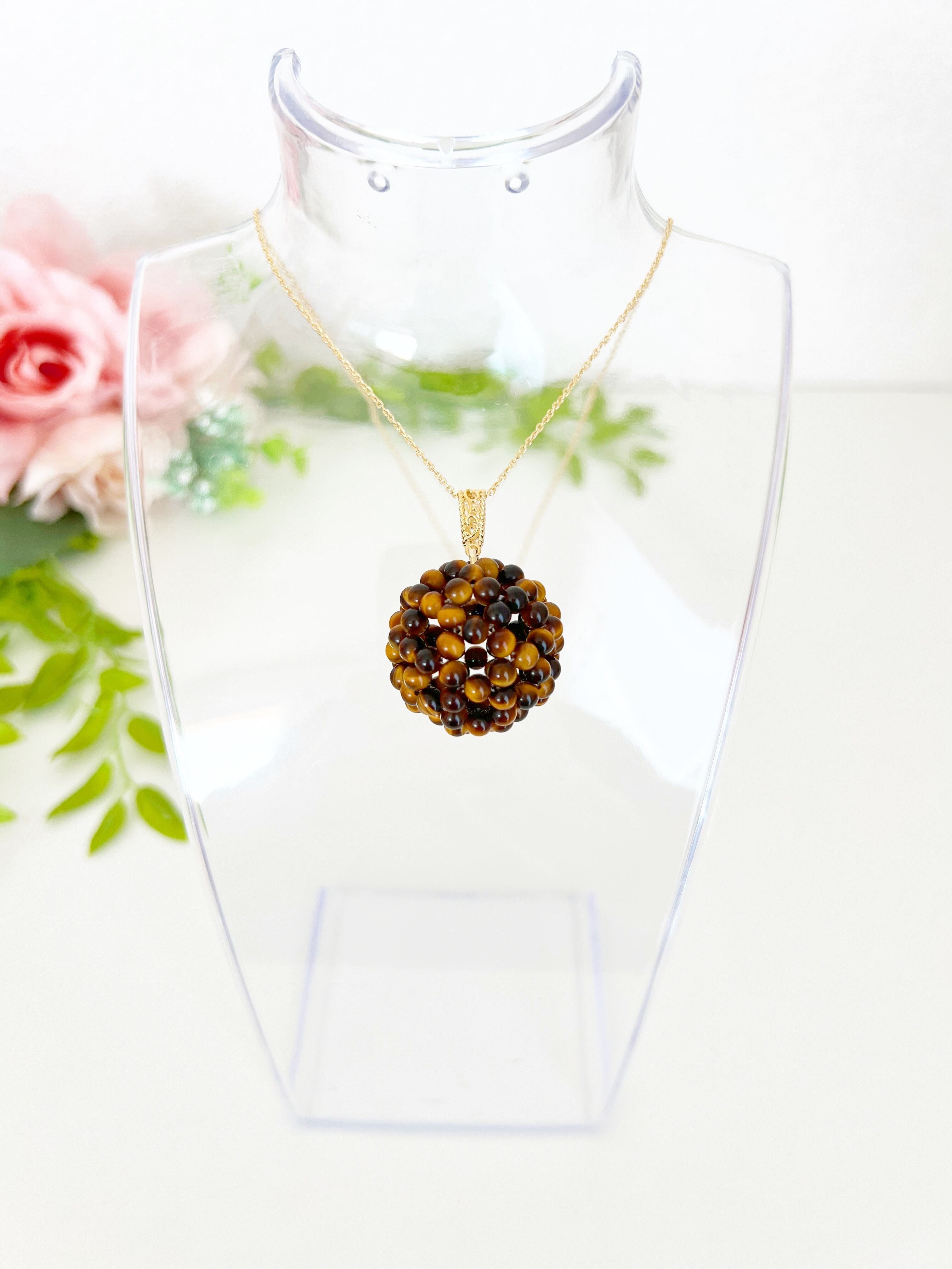 太陽のような黄金の光を放つ「タイガーアイ」を使用した、フラーレン構造のエネルギーペンダント。